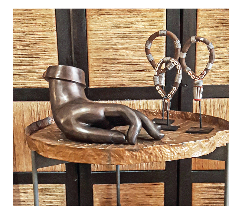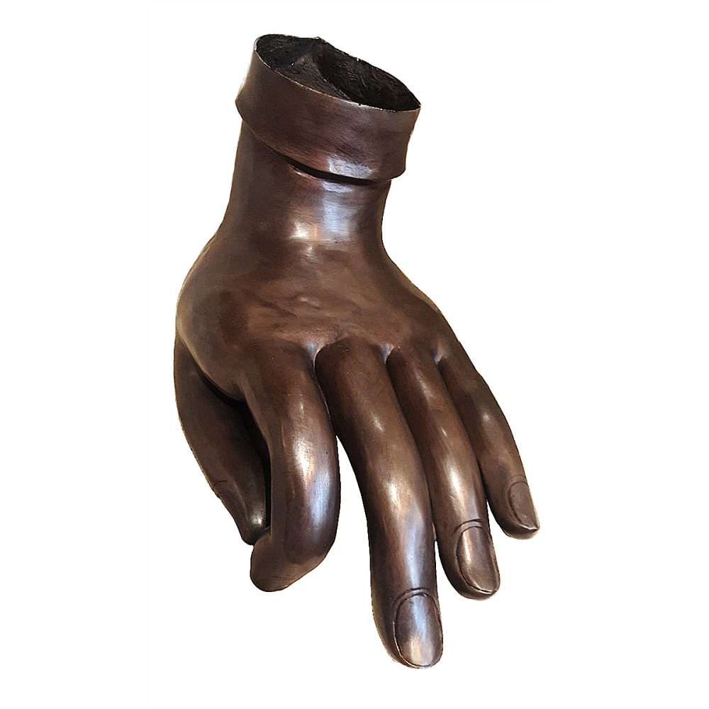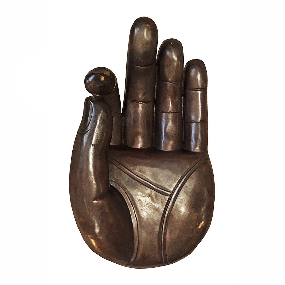 A Buddha hand sculpture, contemporary. Cast bronze, dark polish.
