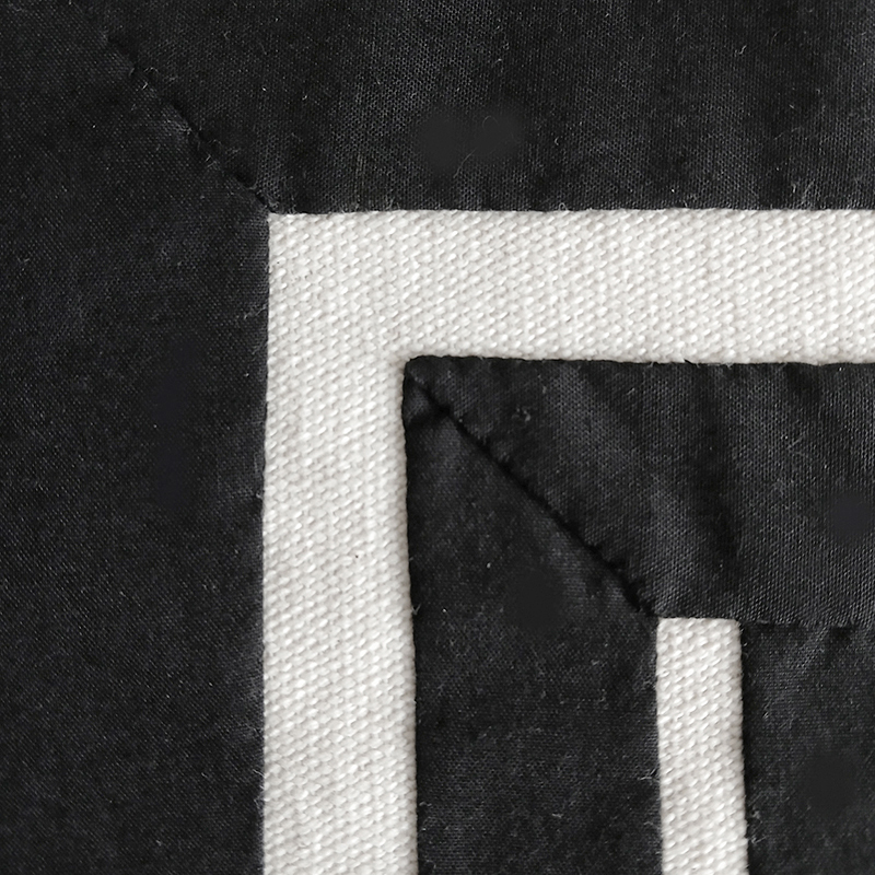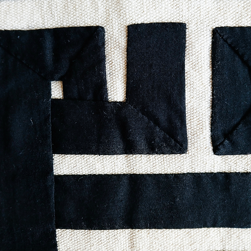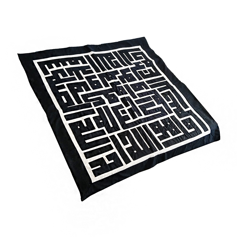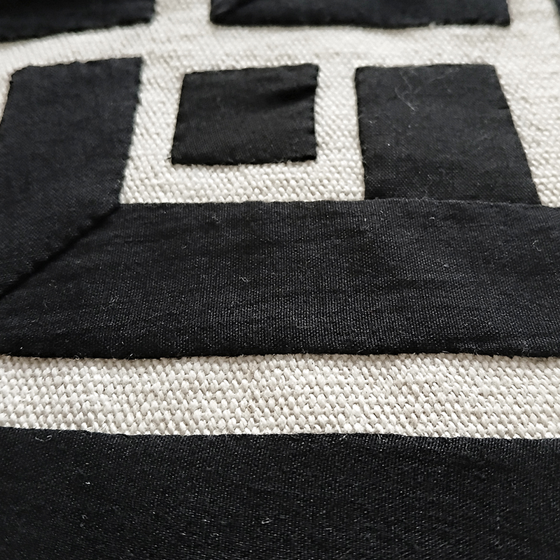 An Egyptian handcrafted tapestry with geometric design. Black cotton on white cotton canvas.