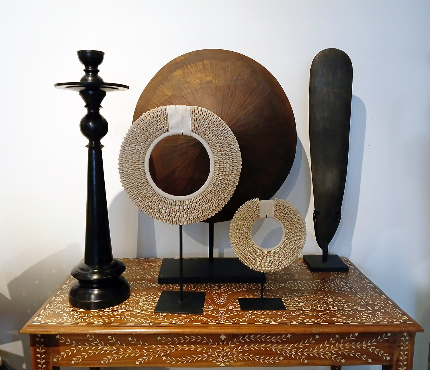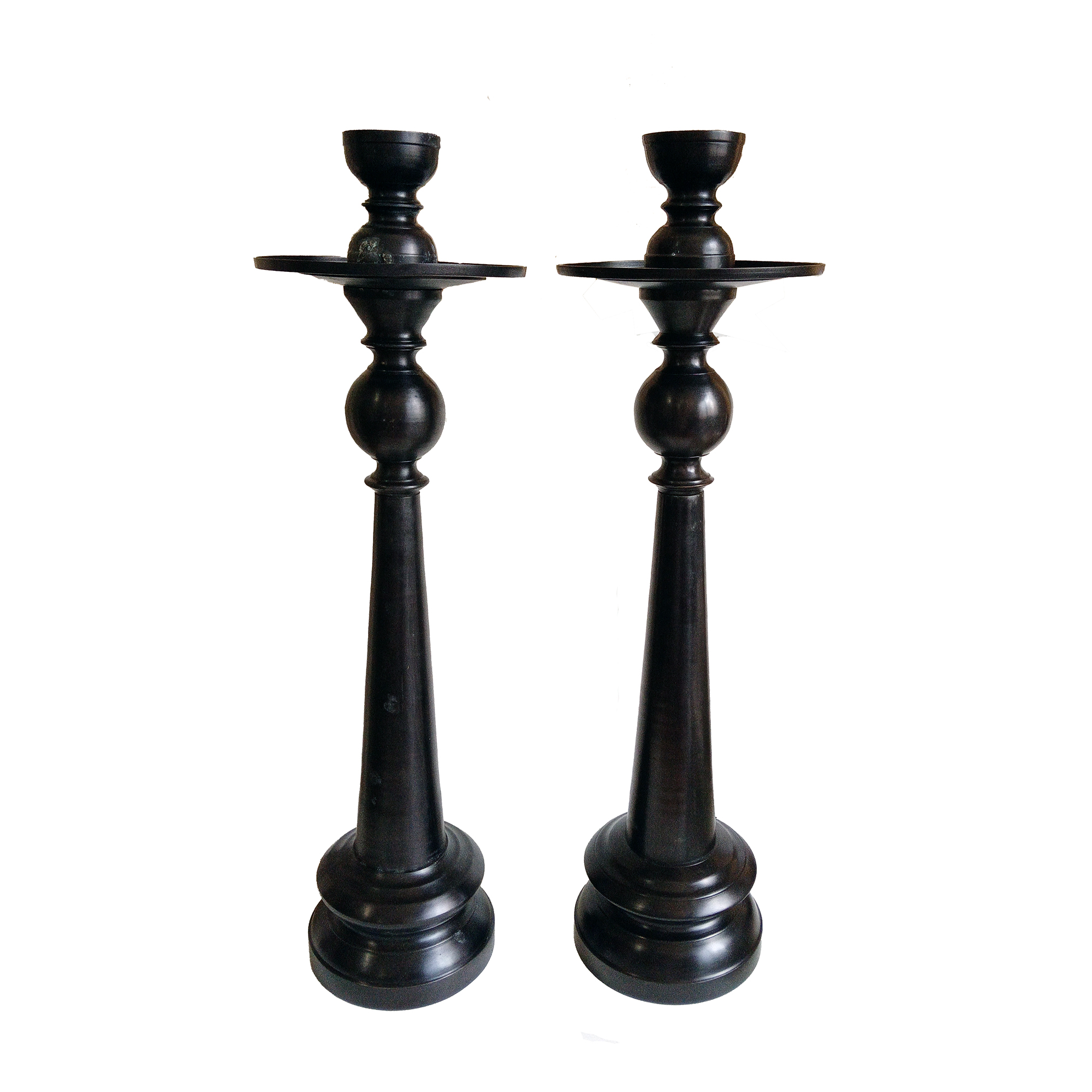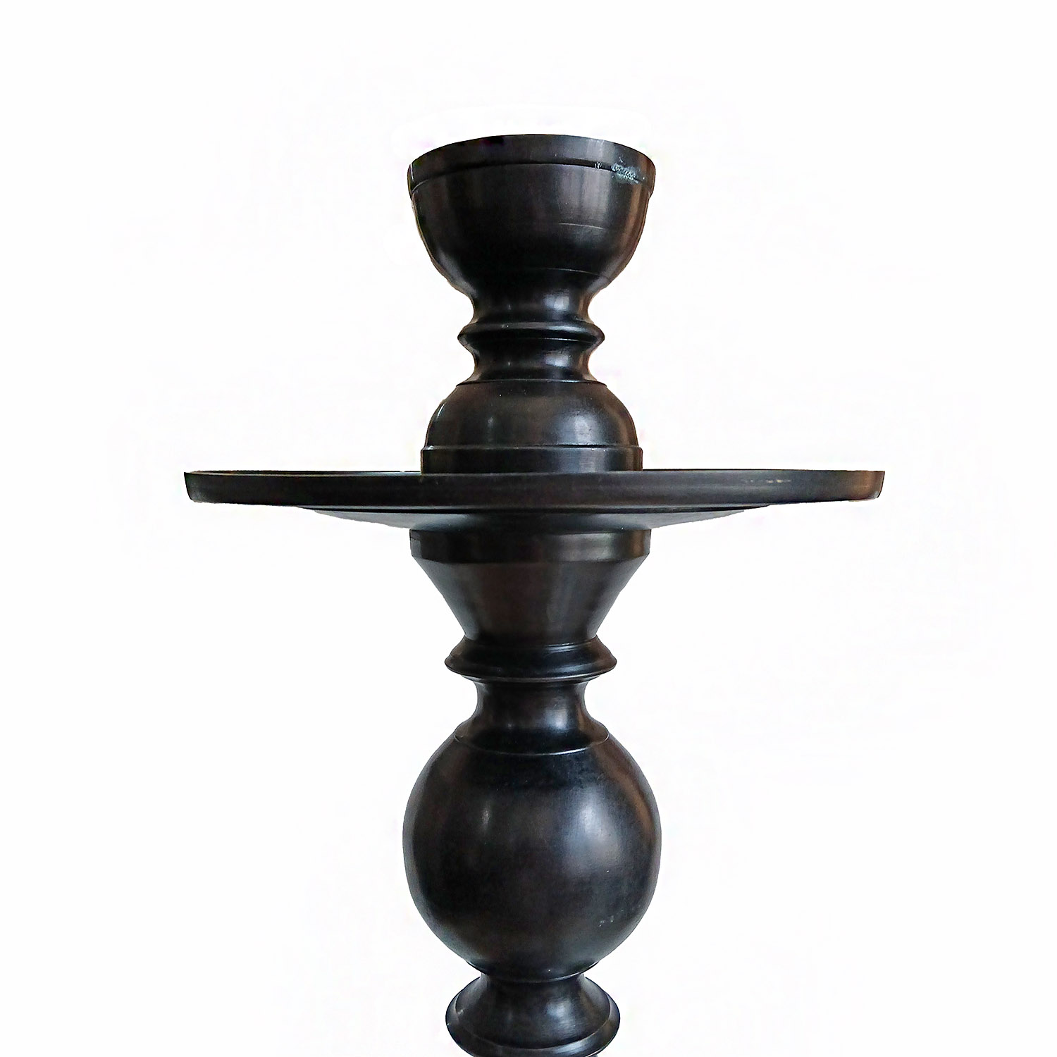 A tall candlestick in forged bronze with black satin finish. Indonesia, contemporary.