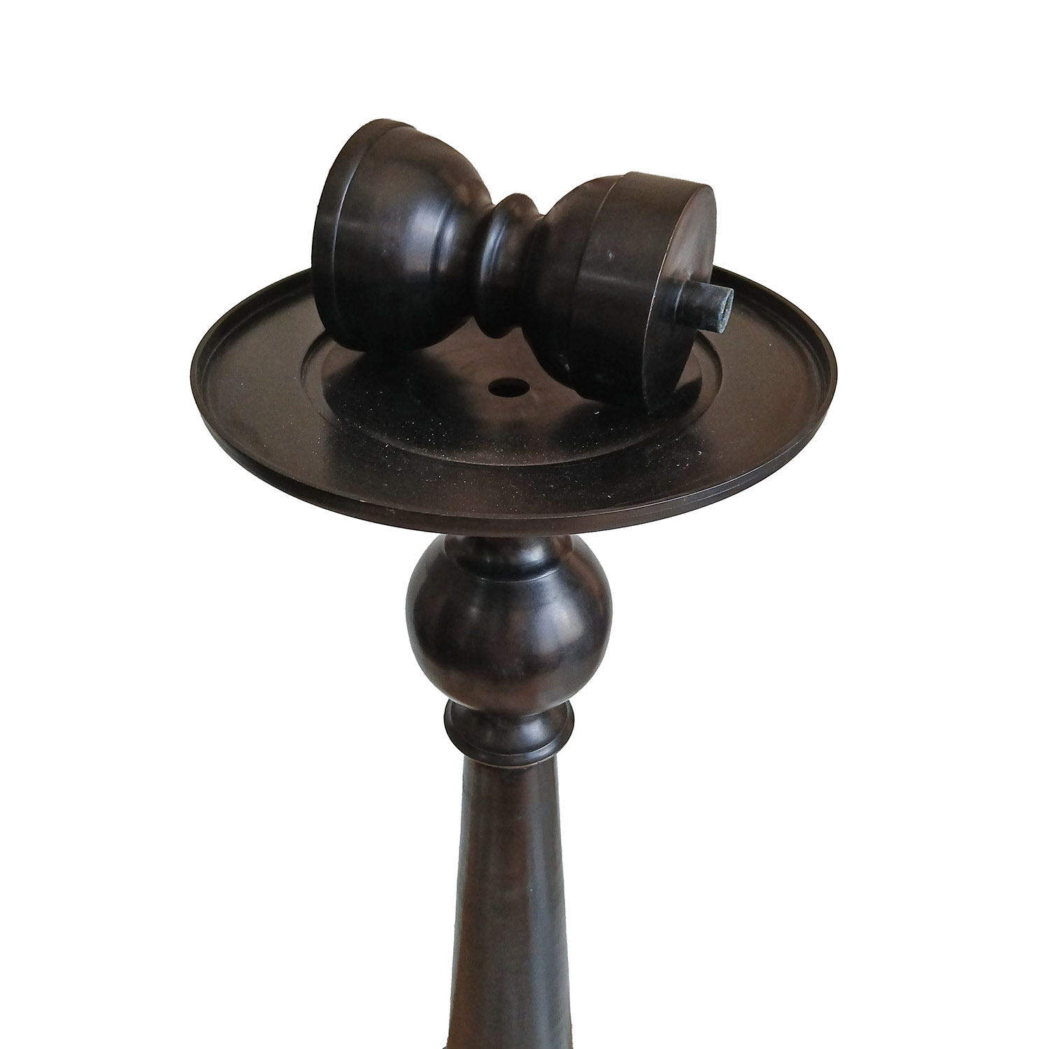 It also includes a removable top that holds candles up to 3 inches in diameter. 32 inches tall, with a 7.5 inch base.