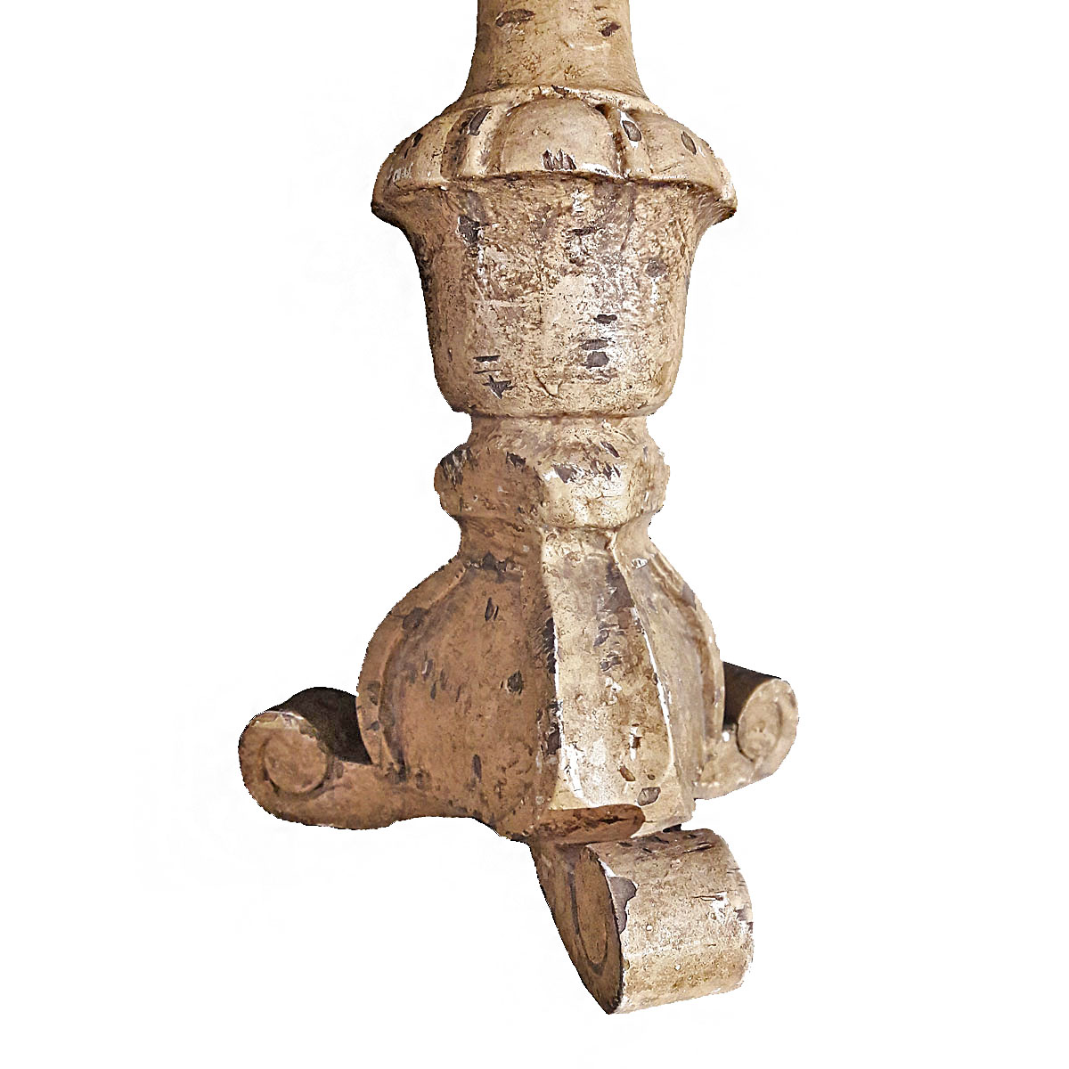 A charming candleholder, hand-carved in wood and polychromed in natural color. From India. Rustic style, circa 1970. Three available, sold separately.