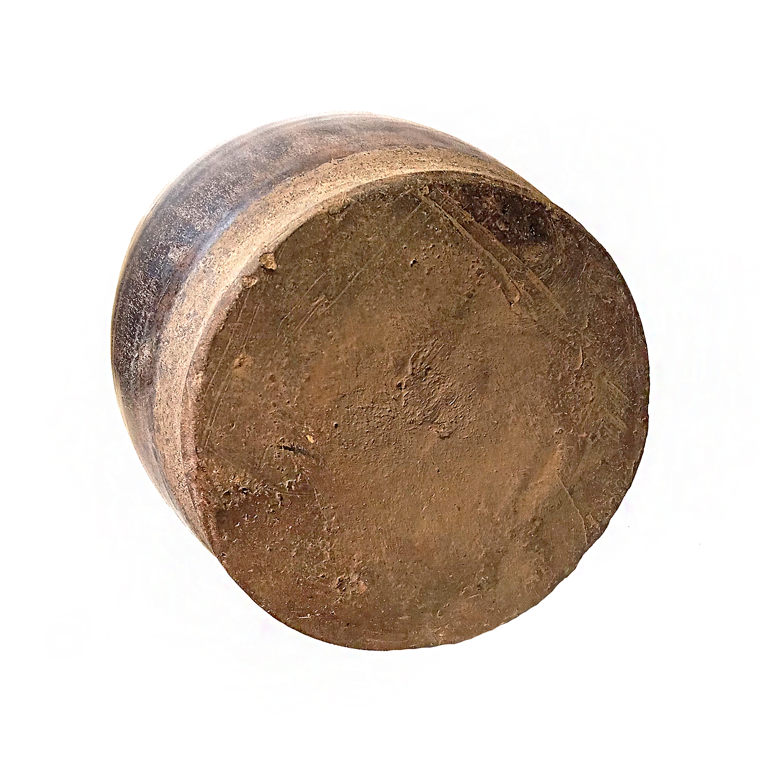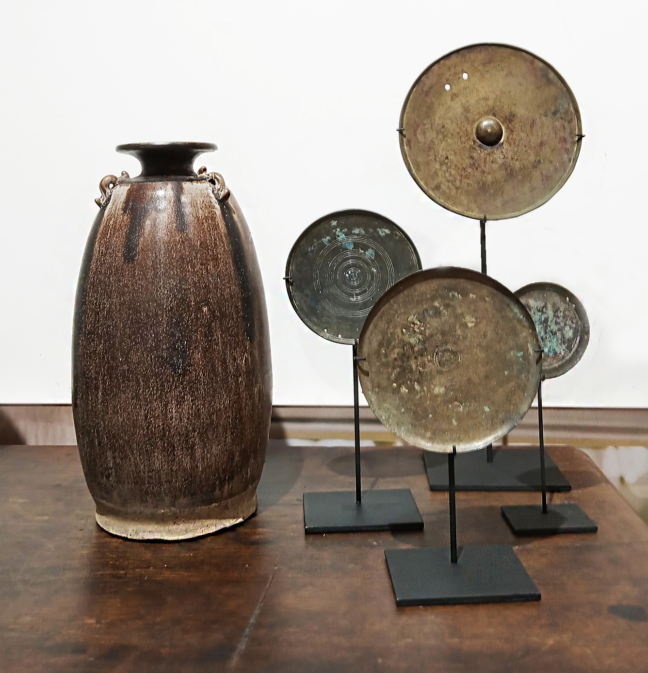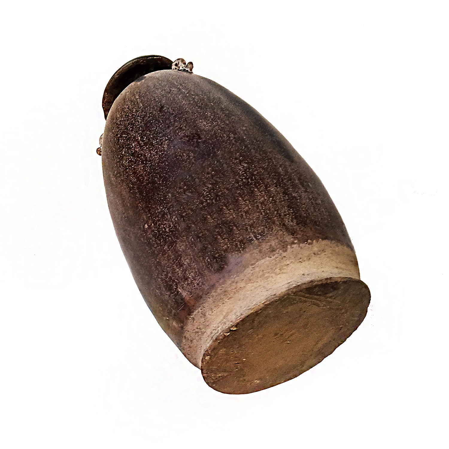 With its mottled brown glaze, this piece makes for a unique decorative piece.