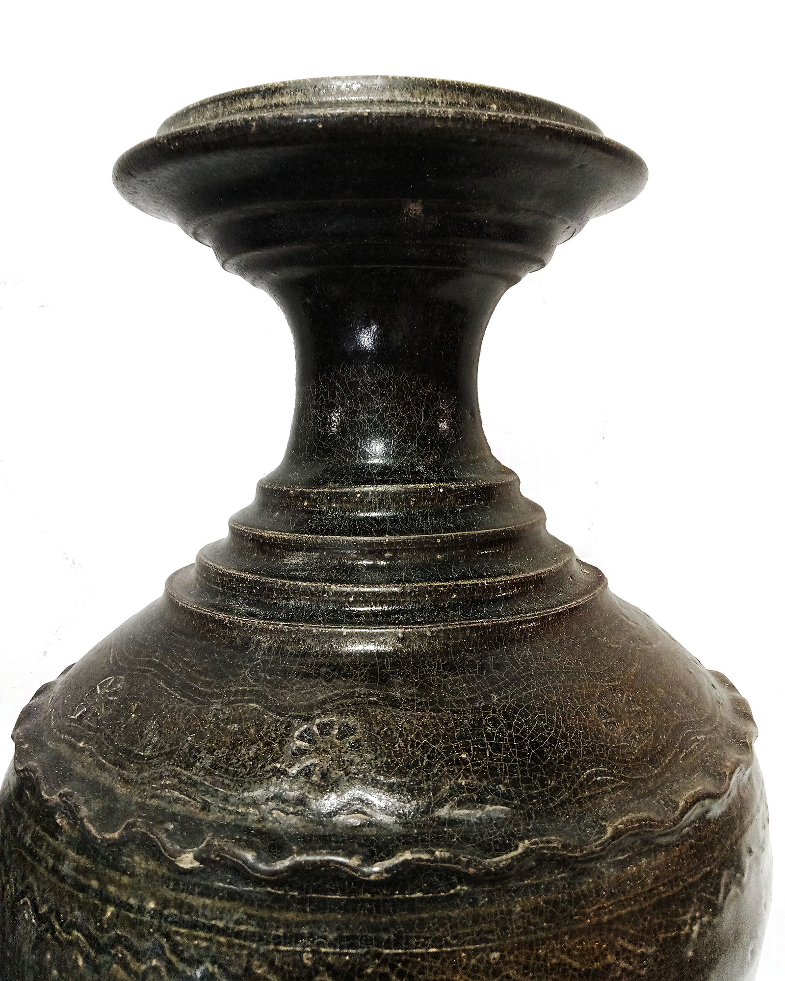 the Khmer ceramics tradition did not disappeared after the 15th Cantury. Jars bearing strong Khmer stylistic imprints in terms of shape (in particular the baluster shape) and decorations, were produced in the 14th century in the kilns of Suphan Buri and Si Satchanalai in Northern central Thailand.