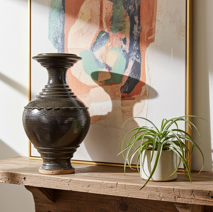 A baluster-shaped Khmer ceramic vase, Central Thailand, 14-15th Century.