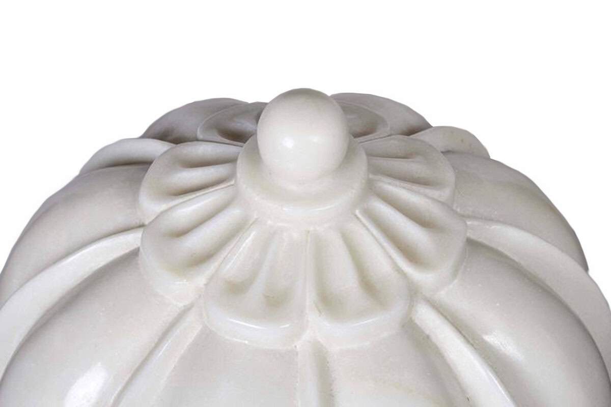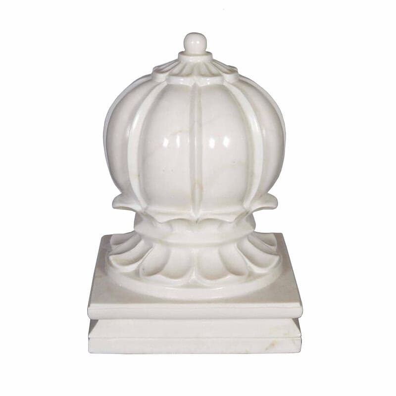 ORB I Marble Carpet Weight. A large marble carpet weight, hand-carved in India out of a pristine block of white statuary marble and polished to perfection, in a classic orb style. Can also be used as a superb decorative accent for gardens, patios, decks or stair columns.