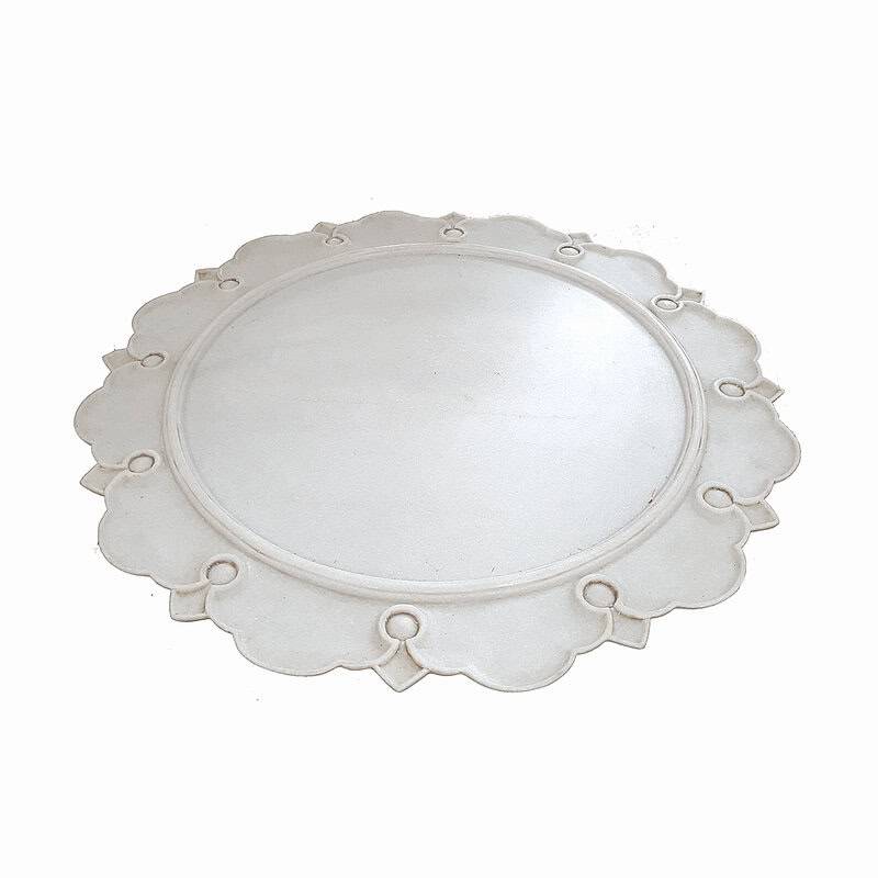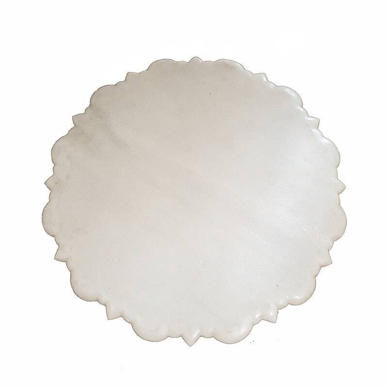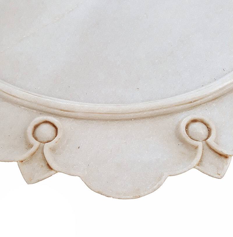 A hand-carved marble charger from India, circa 1980. 21 inches in diameter, half an inch high. Can be used as a charger, as a centerpiece or as a serving tray.