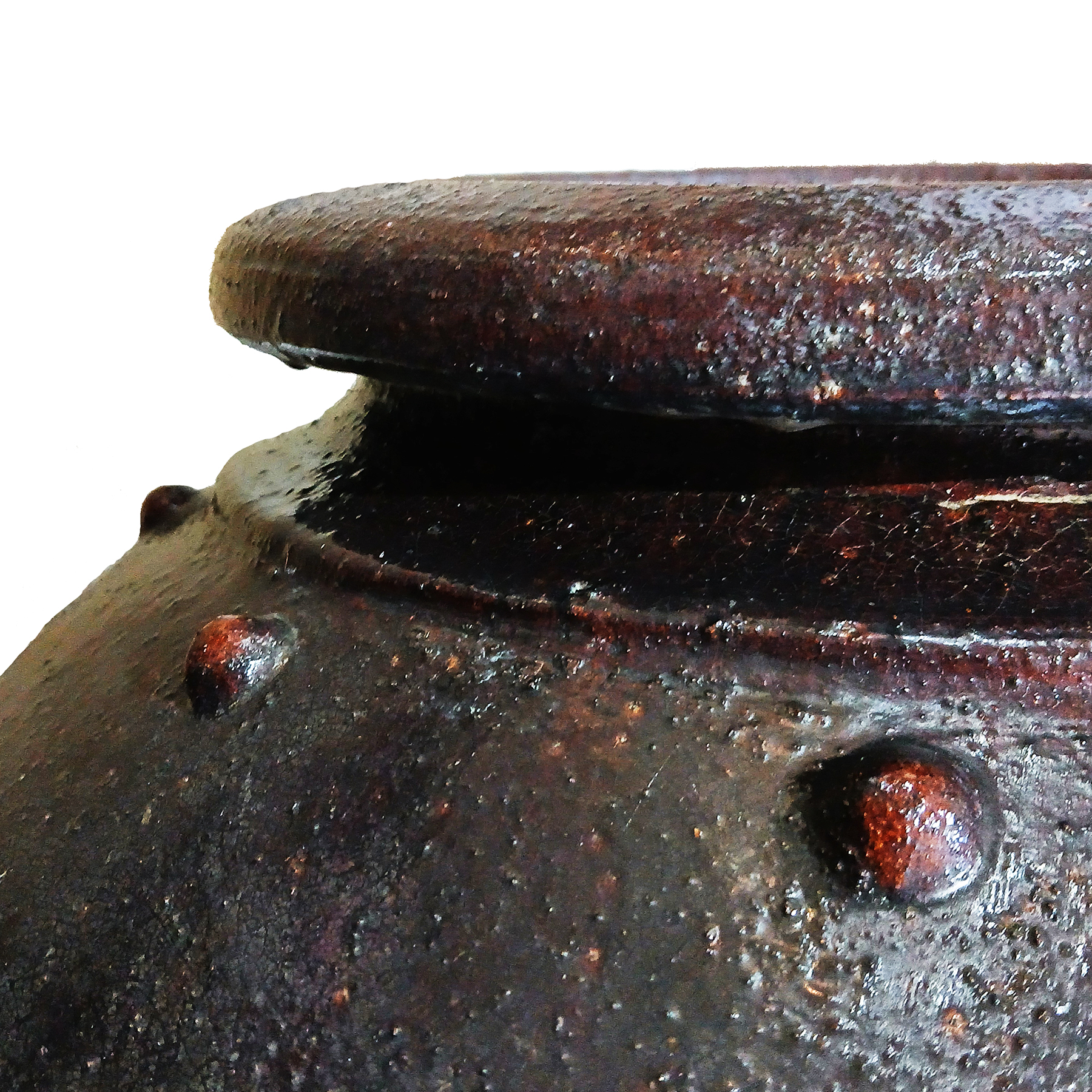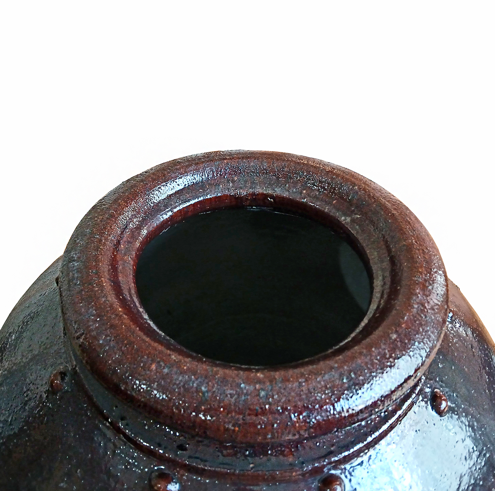 Glazed in burgundy with bas-relief dots and a glossy finish.