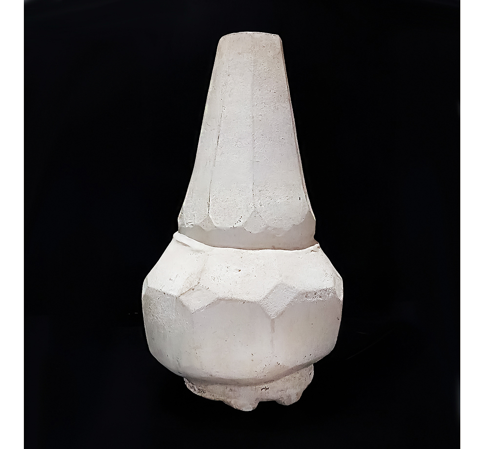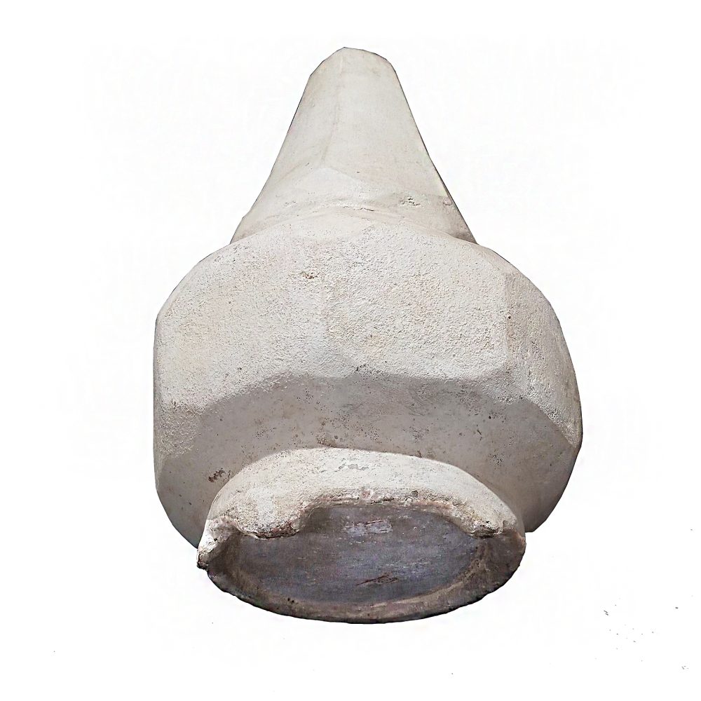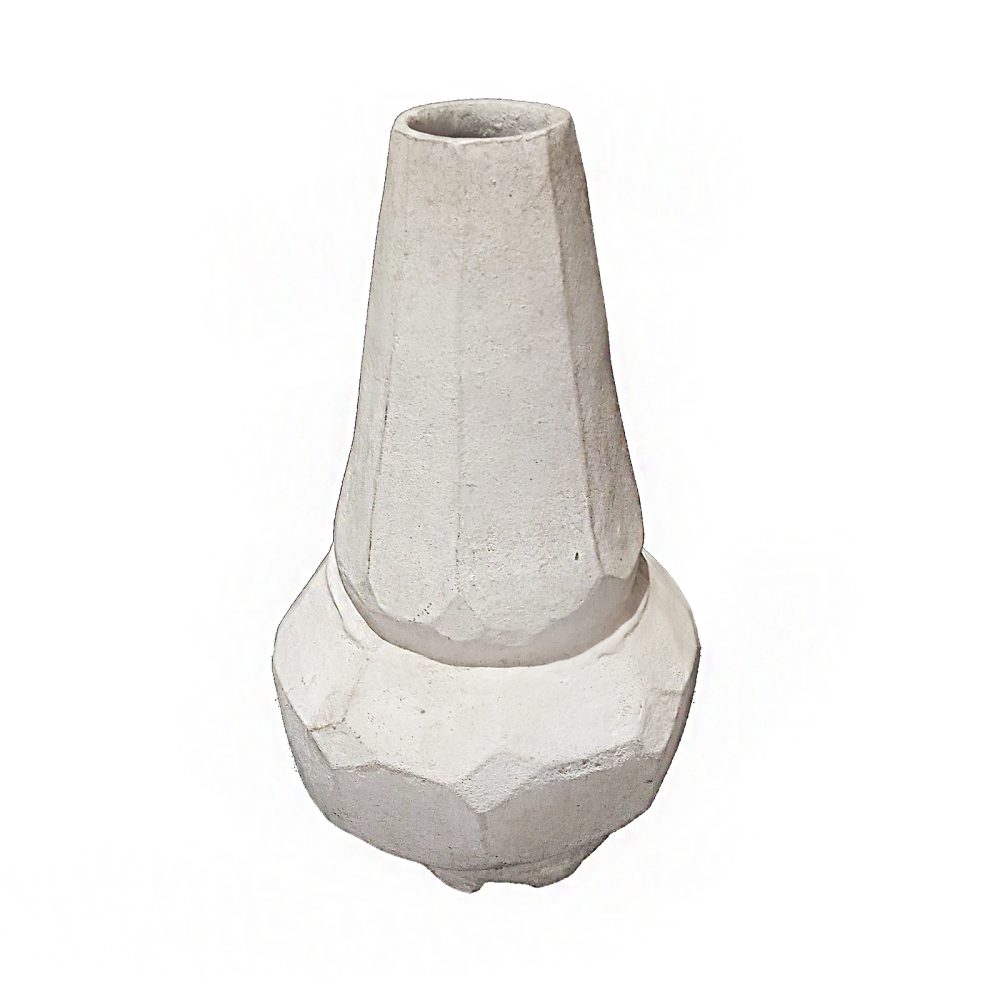 A ceramic vase from Thailand in geometric shape, with white rustic finish and flat glaze. Contemporary.