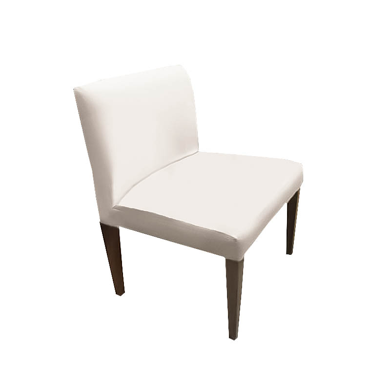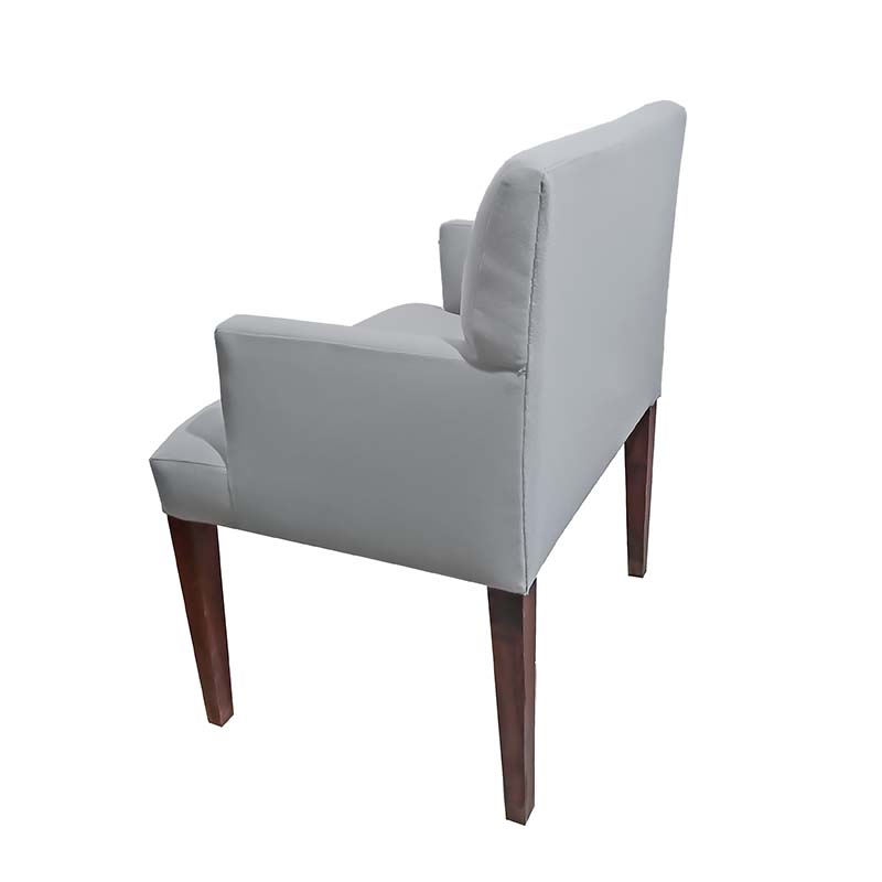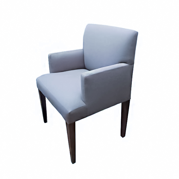 A fully upholstered dining armchair with wood legs, also available in side arm-less chair (4344-B)