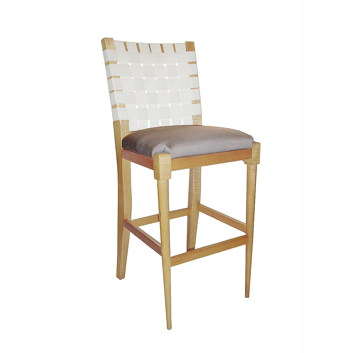 Hand-made in solid maple wood in 6 standard finishes to choose from, and thick cotton canvas webbing in 3 colors. Seat height: 28.5 inches.