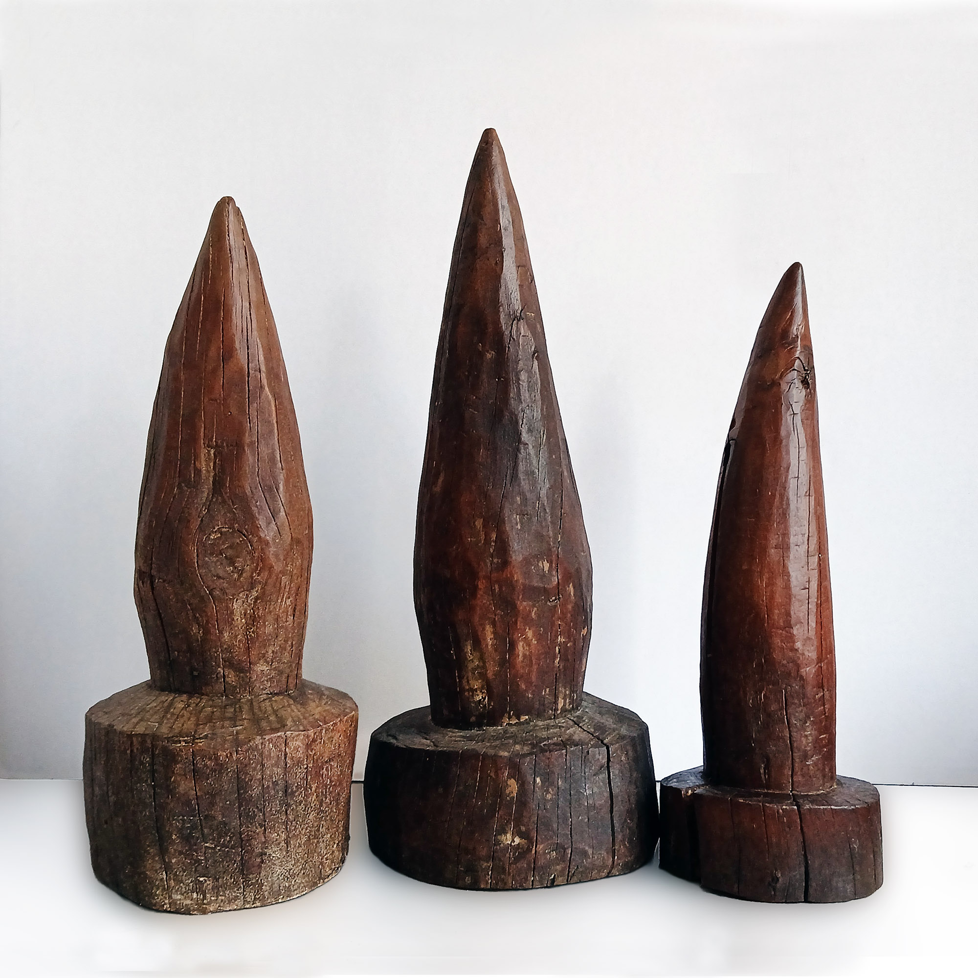 A single piece of solid mango wood, hand carved into a standing cone. Ethiopia, late 1950s. Three available, sold separately.Â